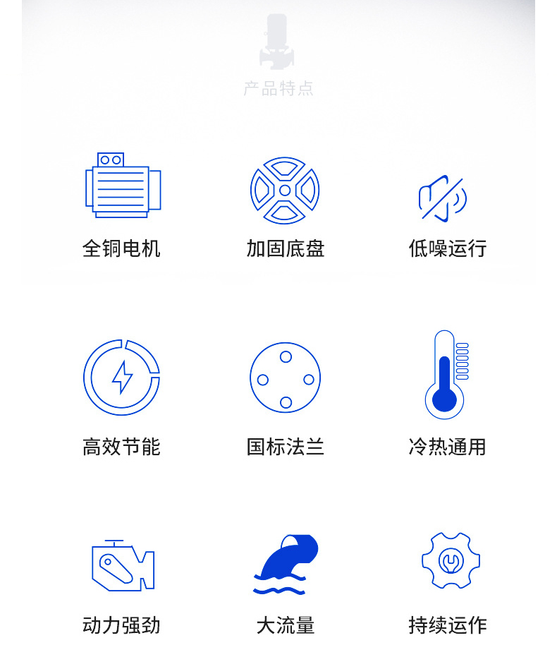 產(chǎn)品說明:南方泵業(yè)td單級立式管道循環(huán)泵,泵進出水口在泵底同一直線上,產(chǎn)品設(shè)計為頂部可拉出的拆裝形式,其可以在不影響管路系統(tǒng)的情況下對泵進行維修。