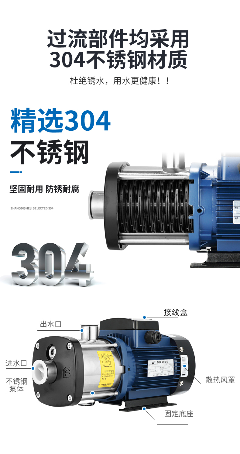 產(chǎn)品說明:南方chm 輕型臥式多級離心泵非自吸臥式多級離心泵,葉輪導(dǎo)葉采用不銹鋼板沖壓焊接制成,配加長軸電機,軸向入口和徑向出口。