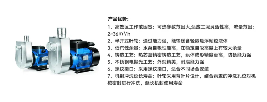 NZXF系列小型不銹鋼自吸泵是在硏究國(guó)內(nèi)外同類(lèi)產(chǎn)品的基礎(chǔ)上,結(jié)合我司先進(jìn)優(yōu)秀的水力模型開(kāi)發(fā)的一種結(jié)構(gòu)新穎、性能卓越的產(chǎn)品。該泵與目前市面同類(lèi)產(chǎn)品相比具有自吸性能好,有一定排污能力,結(jié)構(gòu)簡(jiǎn)單緊湊,外觀小巧精美,特殊結(jié)構(gòu)能保證機(jī)械密封的可靠性和延長(zhǎng)其運(yùn)行壽命,各項(xiàng)性能指標(biāo)在國(guó)家實(shí)驗(yàn)室測(cè)試合格,在國(guó)內(nèi)處于領(lǐng)先狀態(tài),在家用、工農(nóng) 業(yè)具有廣泛前景。